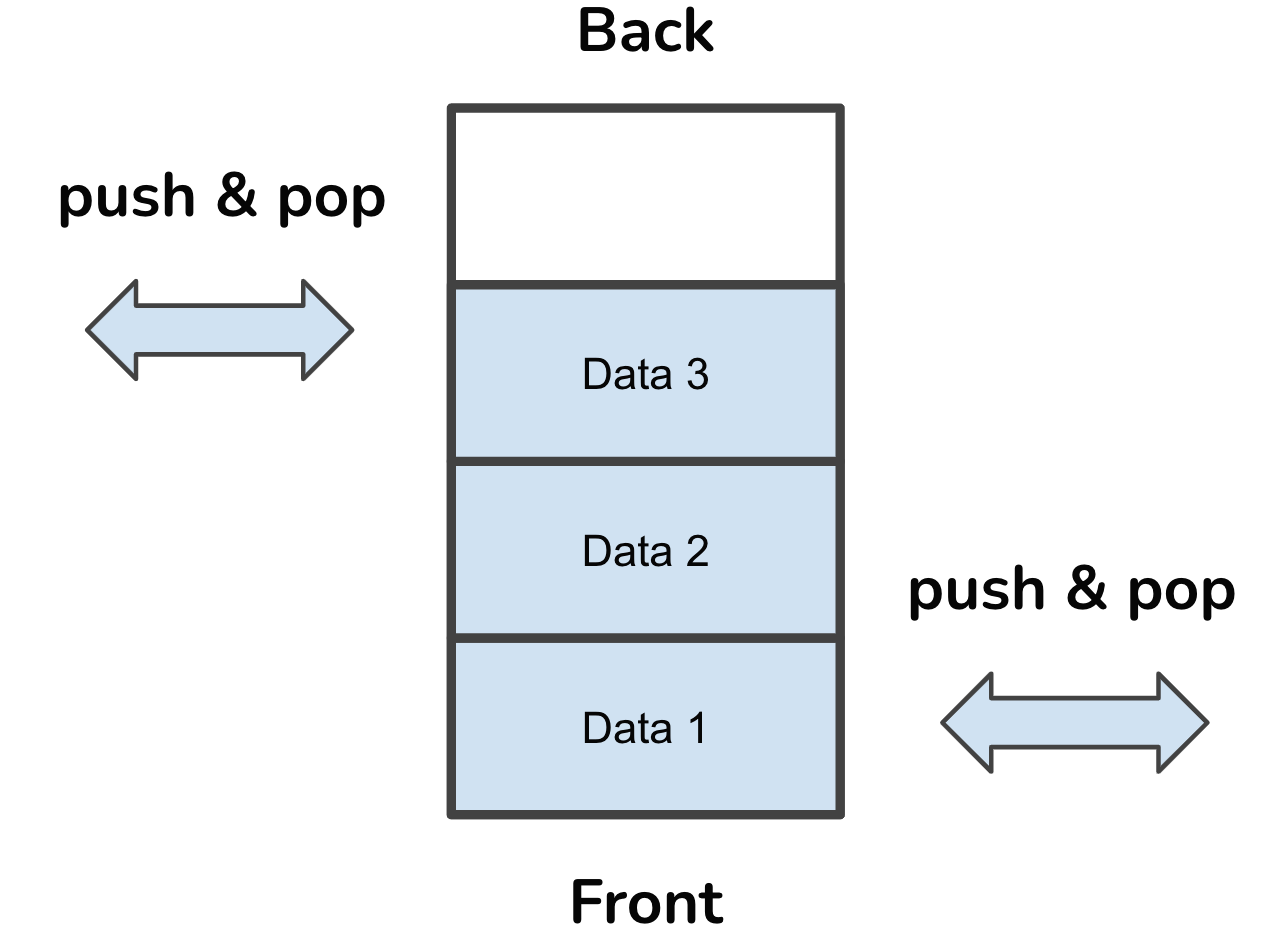 스택과 큐의 결합형 자료구조이며, 어디서든 데이터가 나가고 들어올 수 있다.
